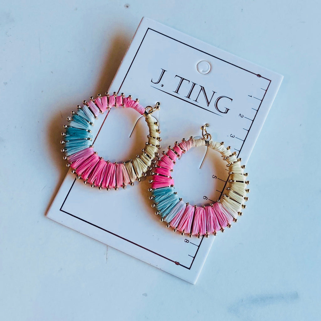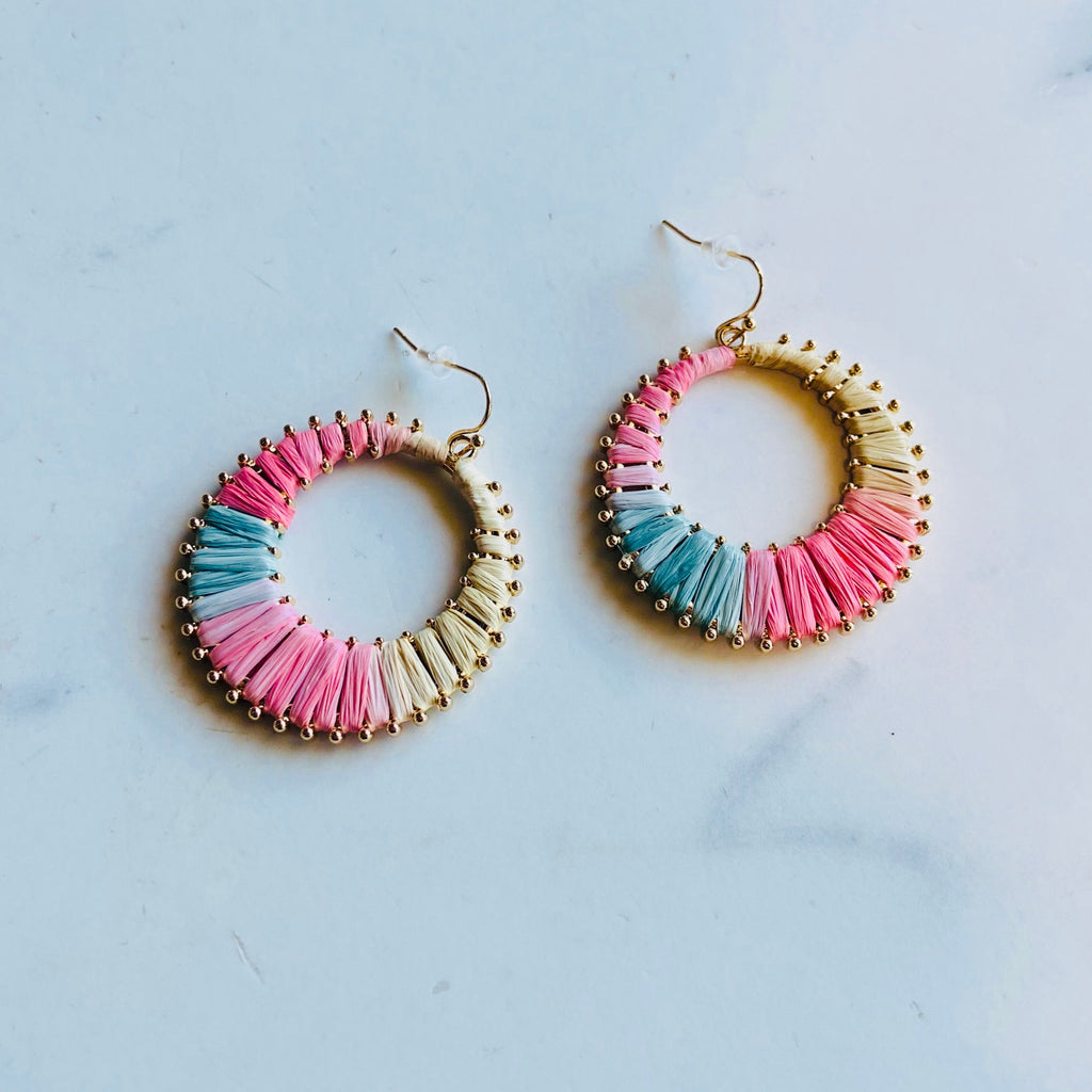 Add a pop of color to your look with these charming circular fabric earrings! Featuring delicate gold beads along the edge, they combine playful textures with subtle elegance. Available in a variety of color combos — Pink & Blue, Baby Blue & Yellow, and Navy Blue & Peach — there’s a pair to suit every style and mood. Lightweight, fun, and perfect for everyday wear or a special occasion!