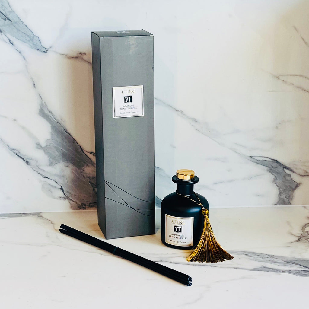 This is a Reed Diffuser set, including 10 bamboo reeds, 125ml Japanese Honeysuckle diffuser oil or 250ml Japanese Honeysuckle diffuser oil and one black diffuser bottle.