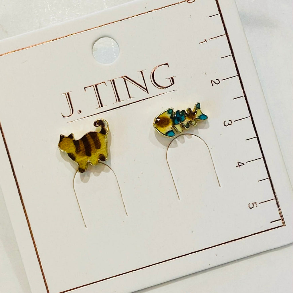 Say hello to your new favourite quirky pair! These earrings feature a playful duo — a curious cat and a cheerful little fish — bringing a whimsical touch to your everyday look.