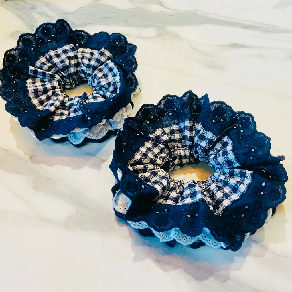 Navy Blue With White Trim Jumbo Scrunchie