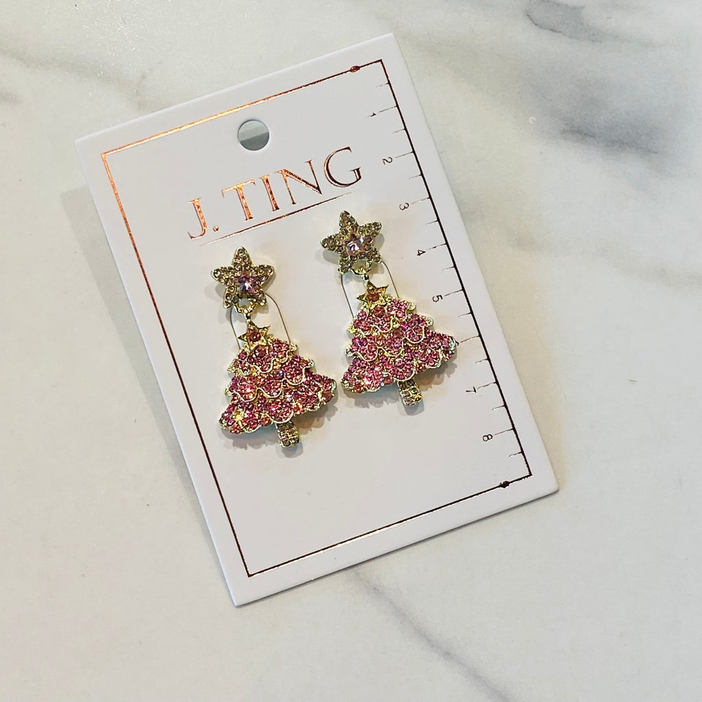 🎄✨ Pink & Gold Christmas Tree Earrings ✨💖 Add a playful and stylish twist to your holiday look with our Pink & Gold Christmas Tree Earrings! Featuring a sparkling gold base with charming pink accents, these earrings are both fun and festive.